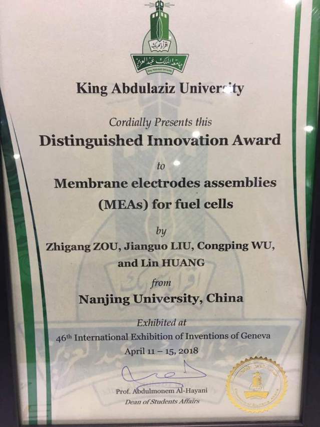 In addition, the “Fuel Cell Membrane Electrode Assemblies and Catalyst Supports Material,” by Zou Zhigang, also won the distinguished innovation award conferred by the delegation of King Abdullah University of Science & Technology.