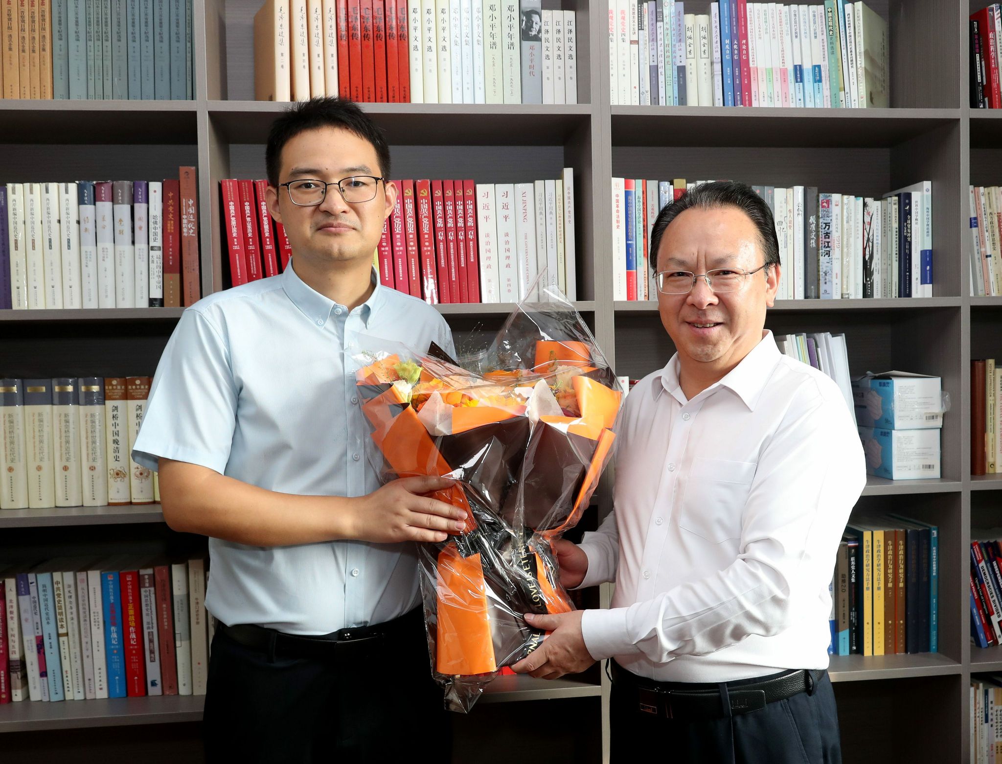 Tan Tieniu encouraged Ni Chunna from the School of Marxism, representative of young teachers, to advance the development of the discipline to new heights.