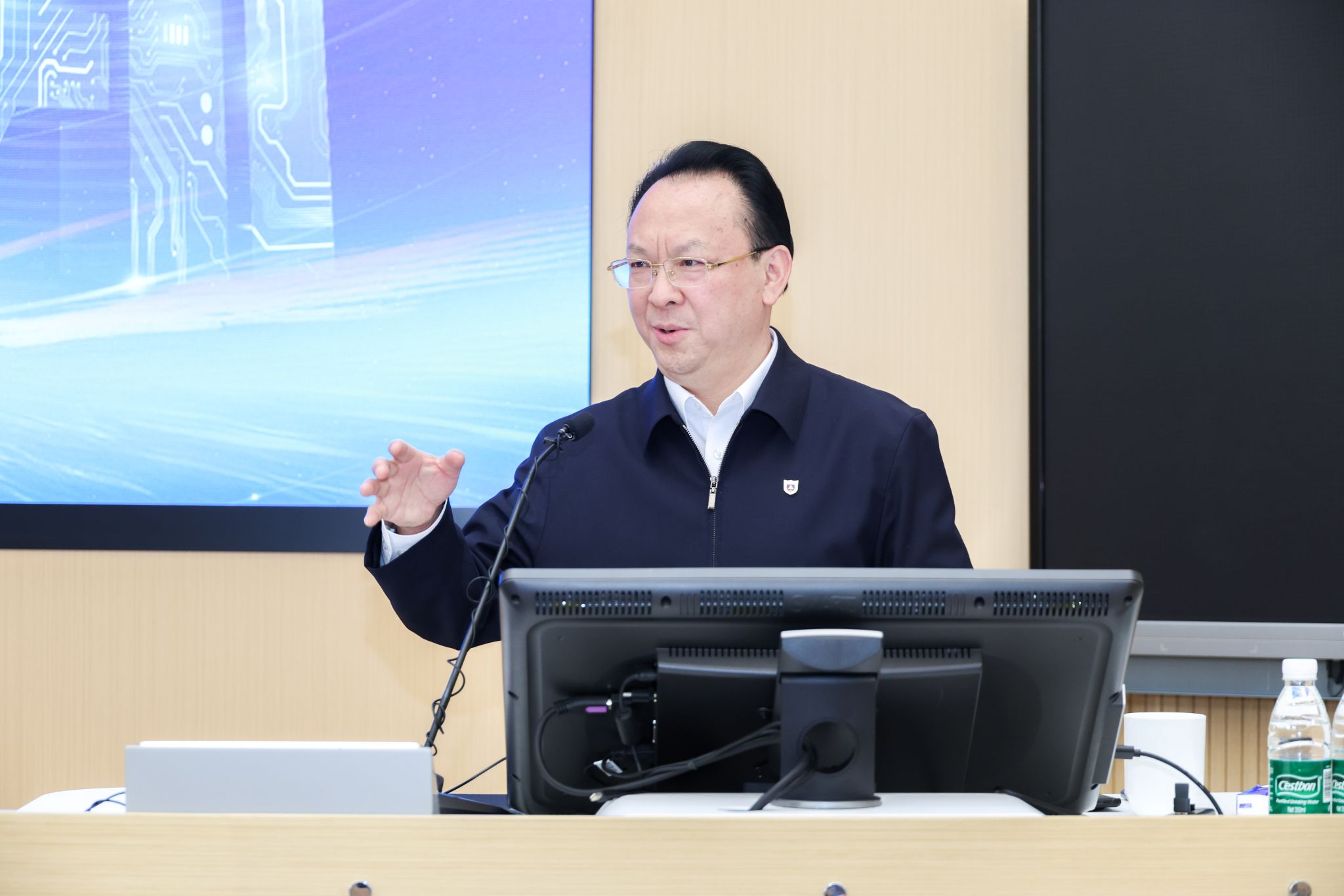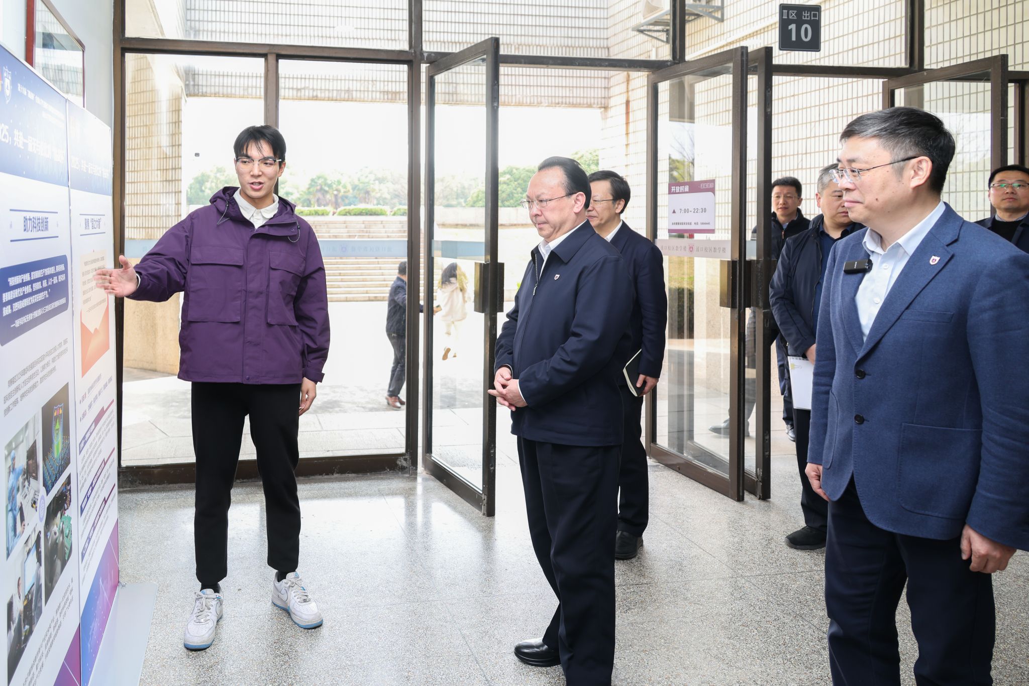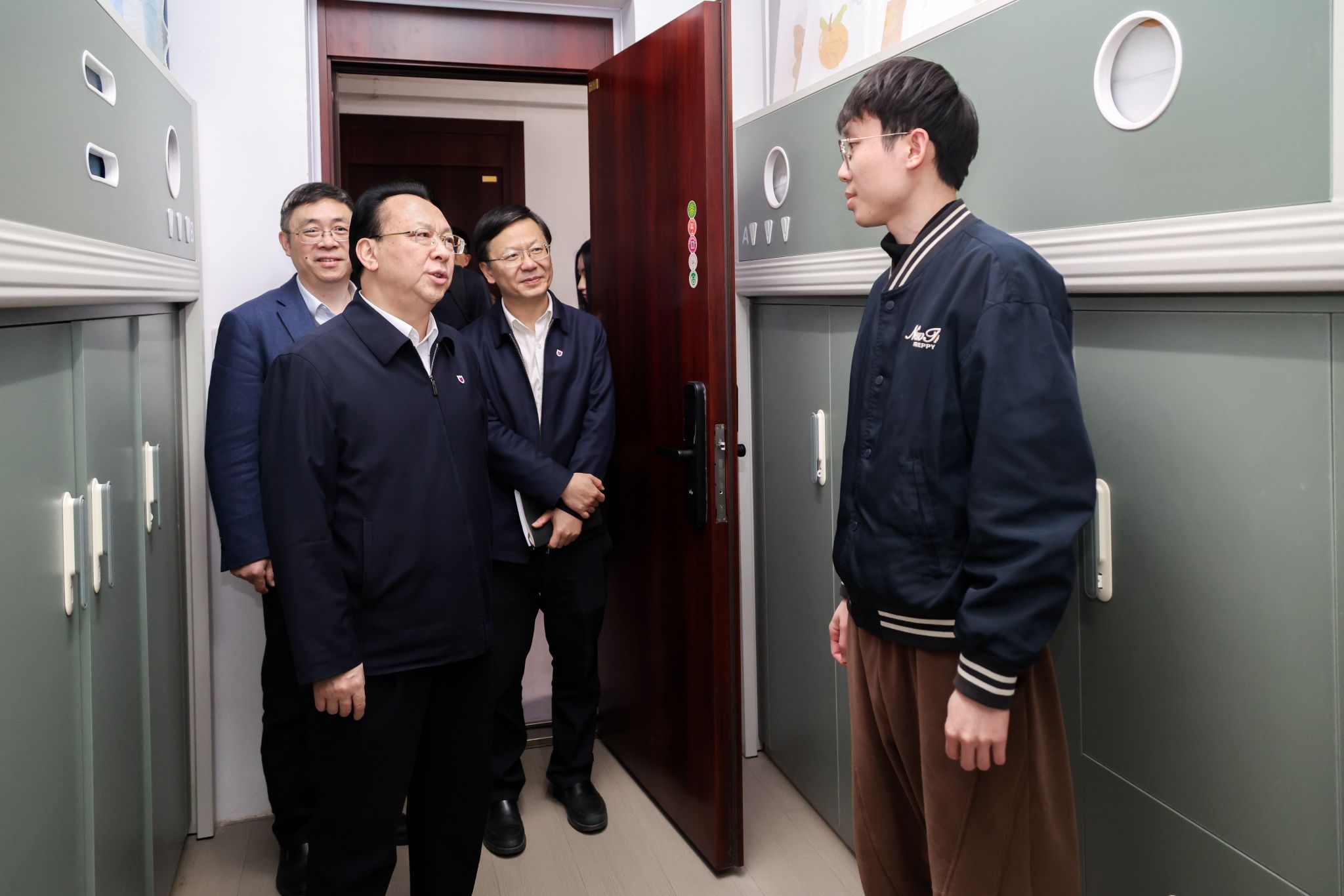 After the lecture, Tan Tieniu visited various places on Pukou Campus, including the Yuhui Building, the Zuo Dijian Sports Hall,the dormitories 17-21 and the No. 15 Student Canteen. During his visits, Tan Tieniu emphasized that responsible persons from relevant departments should truly understand students' thoughts and concerns and promptly solve urgent issues like commuting difficulties by optimizing bus routes and accelerating subway line construction, creating a comfortable, secure, and joyful campus environment at Pukou Campus, enhancing students' sense of belonging and happiness.