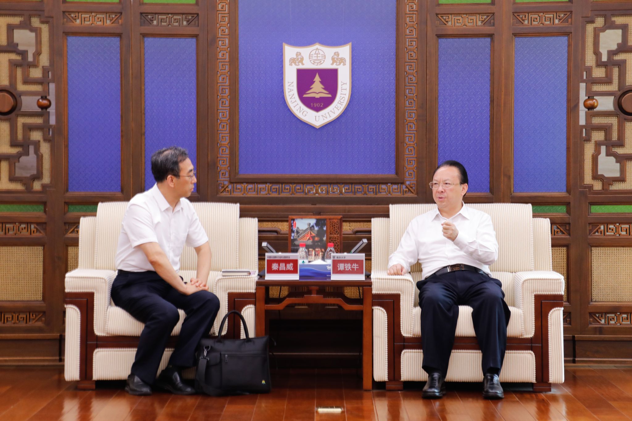 On June 16, 2025, Qin Changwei, secretary-general of the Secretariat of the National Commission of the People's Republic of China for UNESCO, visited Nanjing University. Tan Tieniu, Chair of NJU CPC Council and Academician of the Chinese Academy of Sciences, met with Qin Changwei and his delegation.