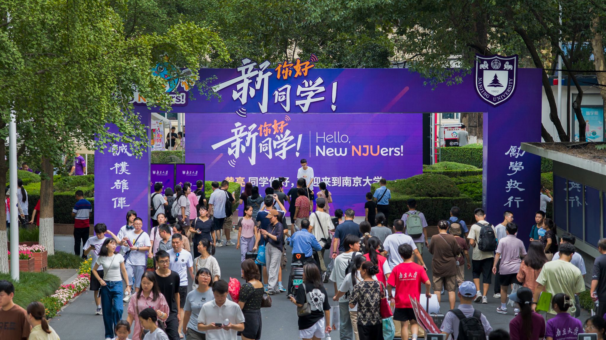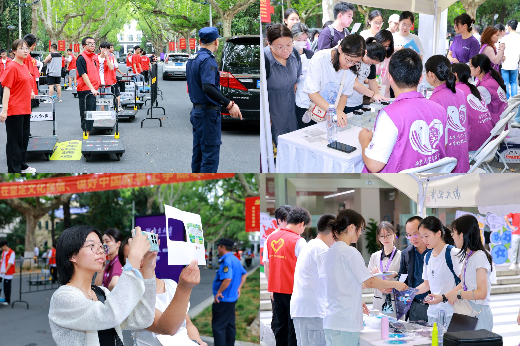 During the freshman registration period, to ensure the smooth registration and enrollment of the 2025 undergraduate freshmen, relevant functional departments collaborated closely and took multiple measures to create a warm and convenient welcoming environment. The university set up reception points at Nanjing Station and Nanjing South Station to guide freshmen to the Gulou Campus. Upon arrival at the campus, Party member pioneer posts and volunteer teams provided route guidance, answered questions, and helped with luggage carrying for freshmen and their parents. Security and logistics support were meticulous, providing care and supplies. Nearly a thousand student volunteers were recruited during the welcoming period, with two volunteer support points and a "Volunteer Home" specially set up on campus. Each point was prepared with sufficient materials to serve the freshmen well while also protecting the rights and interests of the volunteers. The university also organized various on campus cultural activities during the welcoming period to help freshmen integrate into university life more quickly, enhance their sense of belonging to NJUy, and perceive the 120-year academic heritage and NJU spirit through interaction.