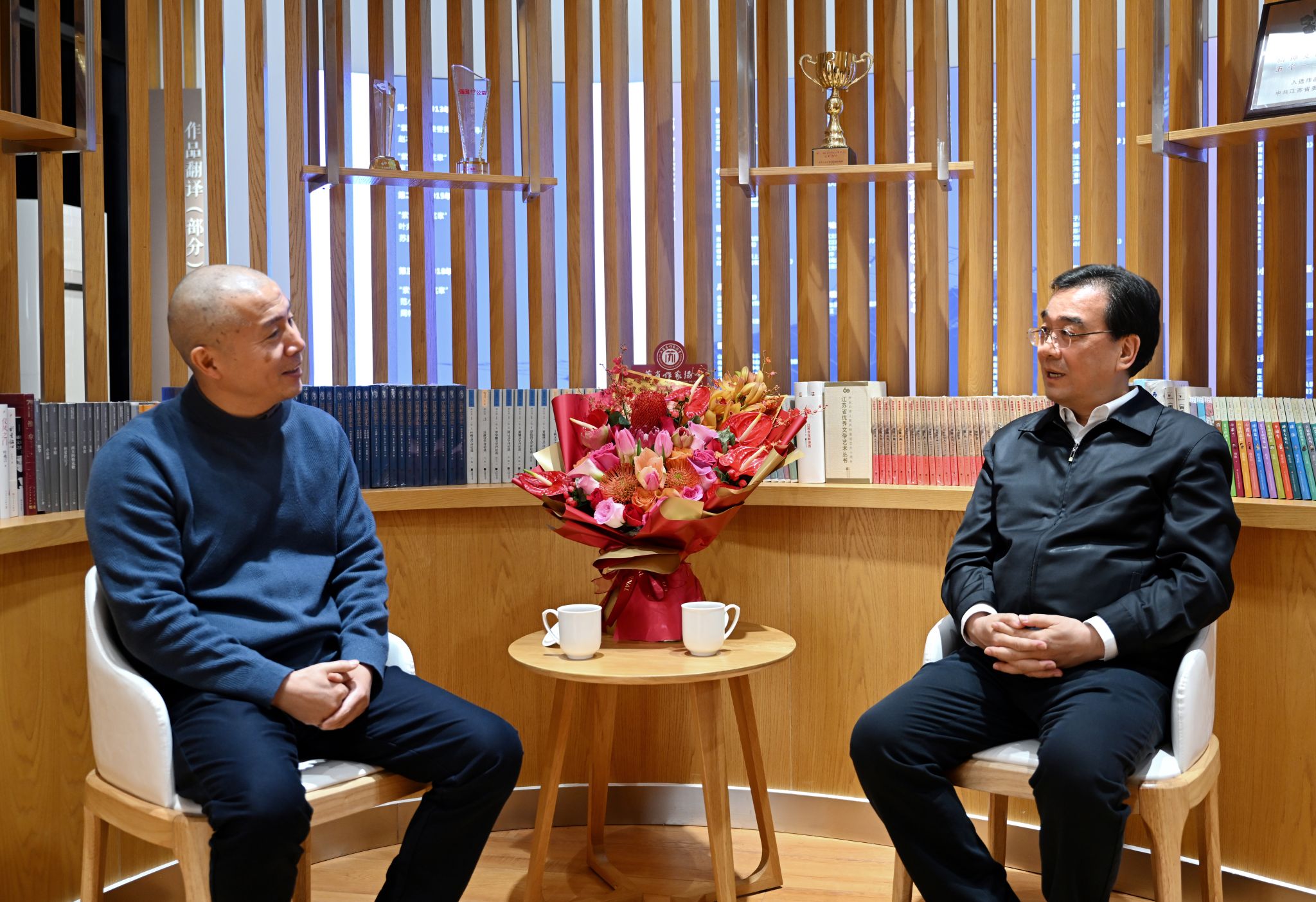 Xin also visited Profossor Bi Feiyu, Vice Chairman of the China Writers Association, Chairman of the Provincial Writers Association.