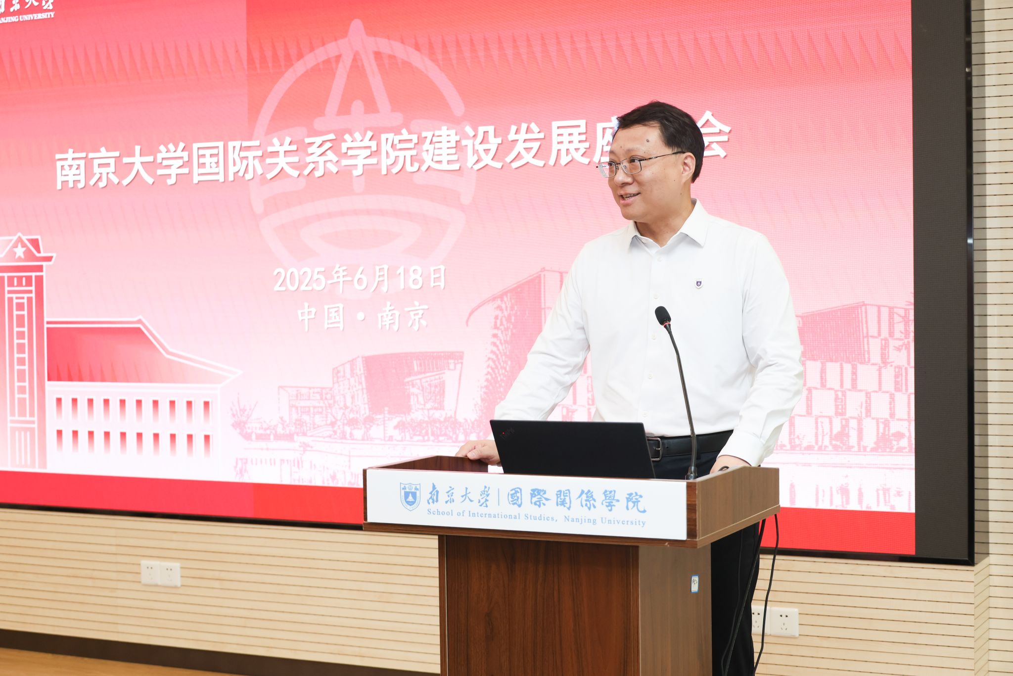 Tan Tieniu welcomed the guests on behalf of Nanjing University and expressed heartfelt gratitude for their support for the School of International Studies. He emphasized that NJU places great importance on philosophy and social sciences, as well as the development of international relations and area studies. Since its establishment, the School has achieved remarkable results in serving national strategic needs, enhancing moral and educational outcomes, accelerating team building, and promoting high-quality discipline development. Faculty and students have worked together to write a vibrant chapter in the university's comprehensive "Forging Ahead Initiative" and the acceleration of "Double First-Class" construction. The School of International Relations is tasked with strengthening research in international relations, area studies, and international organizations, promoting the construction of NJU's distinctive area studies disciplines, cultivating high-level diplomatic talents with both national sentiment and international vision, and addressing China's prominent issues in international exchanges. It is an indispensable part of the grand blueprint for building the "unique Nanjing University." He hoped that the School of International Studies would strive to become an academic stronghold serving the Party and national work, a model for building an independent knowledge system in Chinese philosophy and social sciences, and write a new chapter in accelerating the construction of a world-class Nanjing University with Chinese characteristics.