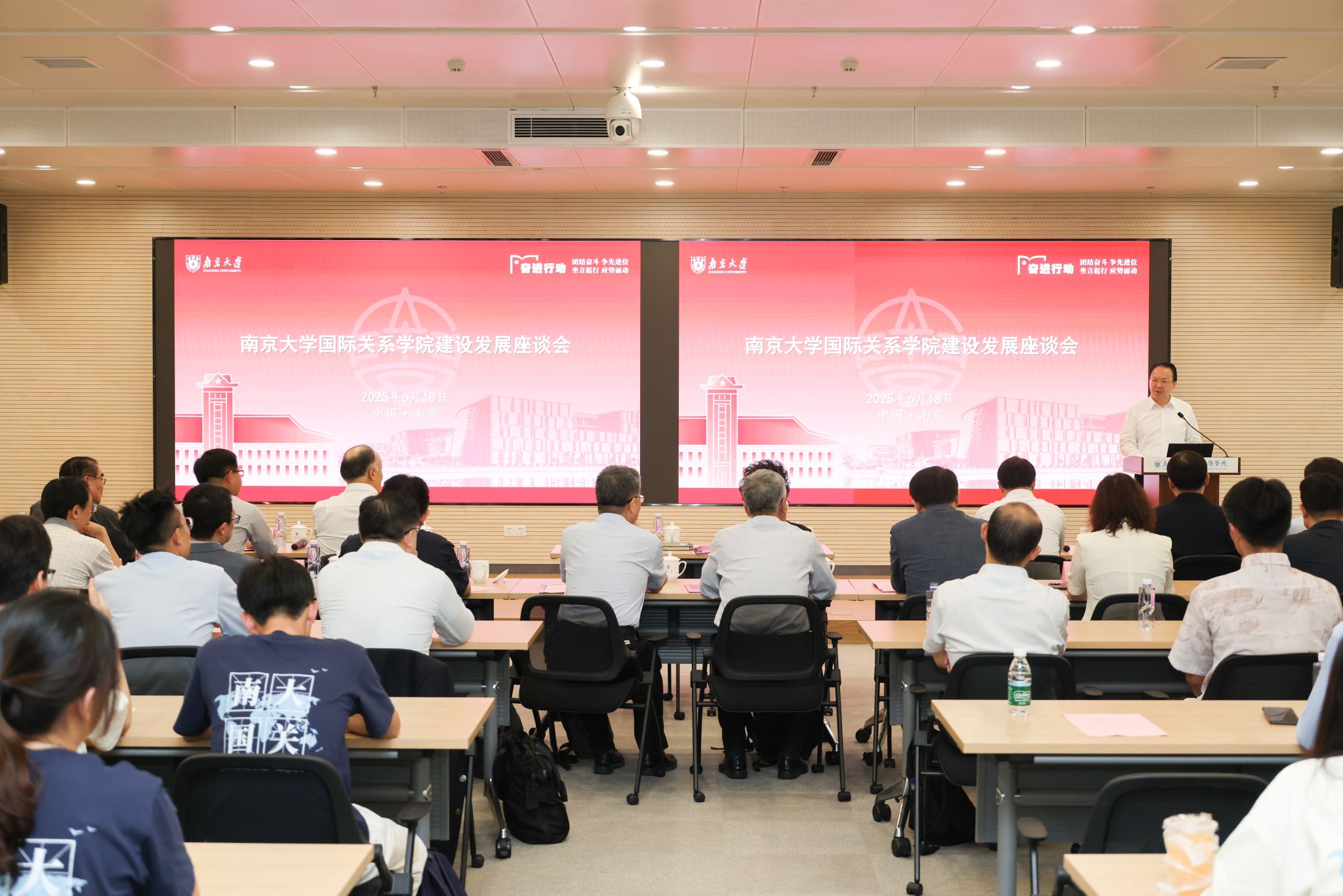 On June 18, the symposium for development of NJU School of International Studies was held at Yongman Pavilion, Xianlin Campus. Attendees included Tan Tieniu, Chair of NJU CPC Council and Academician of the Chinese Academy of Sciences; Qiu Yuanping, former Executive Deputy Director of the International Department, Central Committee of CPC and former Director of the Overseas Chinese Affairs Office of the State Council; and Yang Jin, former Ambassador and Permanent Representative of China to UNESCO.