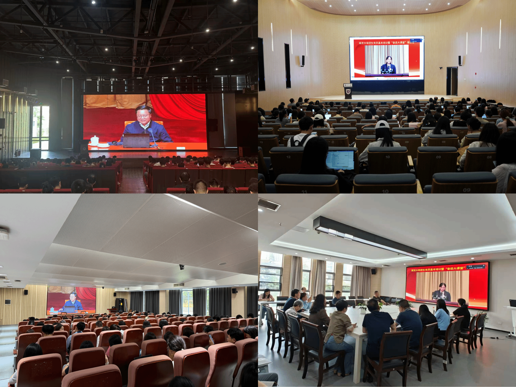 校领导班子成员、老领导、机关和直属单位党员干部、部分学院师生党员代表在仙林校区主会场参加培训。其他师生党员通过收看直播方式在各分会场参训,无法到校参训的党员通过二级党组织开设的线上课堂同步观看视频课程参训。