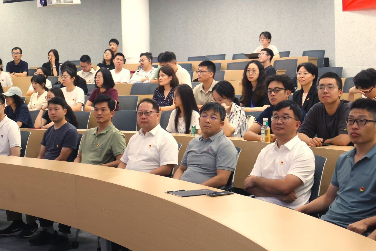 卓越工程师学院与前沿科学学院党委书记、苏州校区管委会副主任陈谦,卓越工程师学院、前沿科学学院、机器人与自动化学院以及各研究院党员代表和师生代表共同观看了本次纪念大会。