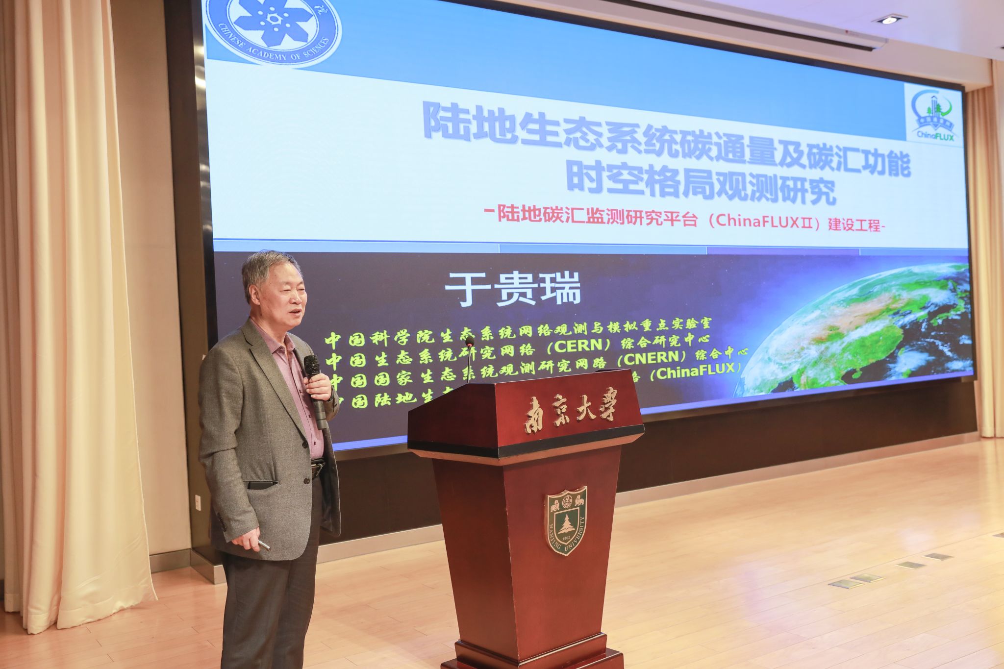 应地理与海洋科学学院和国际地球系统科学研究所的邀请,中国科学院院士、中国科学院地理科学与资源研究所于贵瑞研究员2025年3月25日莅临凯发k8官网,在凯发k8官网杜厦图书馆一楼报告厅作题为“陆地生态系统碳通量及碳汇功能时空格局观测研究—陆地碳汇监测研究平台(ChinaFLUX Ⅱ)建设工程”的学术报告。来自凯发k8官网地理与海洋科学学院、大气科学学院、地球科学与工程学院、环境学院、国际地球系统科学研究所、凯发k8官网师范大学、凯发k8官网信息工程大学和凯发k8官网林业大学等师生200多人参加报告会。报告会由凯发k8官网地理与海洋科学学院党委书记鹿化煜教授主持。