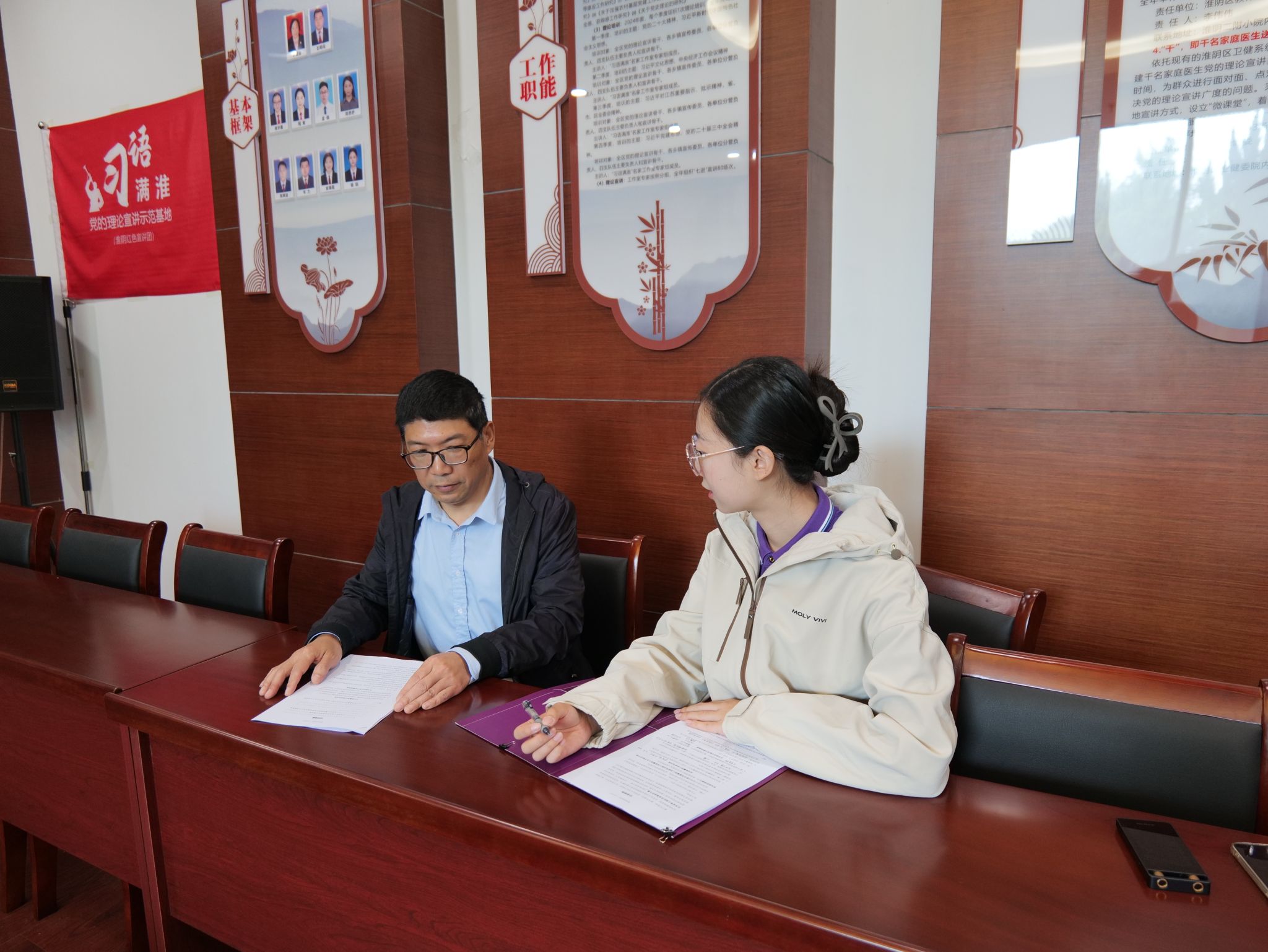 备赛期间,牛彤丹为深入挖掘英雄人物背后的详实情节与精神内涵,在档案馆、校史研究室专家老师的指导下反复查阅史料、撰写修改脚本、拍摄录制故事视频,还专程拜访了对刘惠馨有深入研究的淮安市淮阴区委史志研究室副主任傅兴政,并实地探访了刘惠馨烈士在淮安生活过的历史场所等地,充分掌握素材,为讲好校友烈士的故事打下坚实基础。